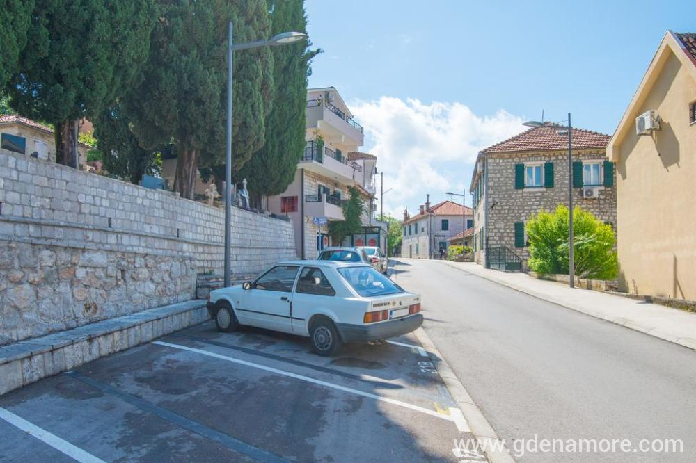 Die große 1/4-Wohnung befindet sich im Erdgeschoss eines großen Steinhauses aus dem Jahr 1902. das unter dem Schutz der UNESCO steht. Ein steinerner Innenhof mit einem historischen Tisch, umgeben von einer blühenden Arla. Zwei separate Schlafzimmer mit kompletter Küche, Flur und Abstellraum. Badezimmer mit Waschmaschine. Die Wohnung ist dauerhaft an das VI FAJ-System angeschlossen, für das keine Gebühren anfallen. Die Nutzung der Klimaanlage kostet 2 € pro Tag. Der Parkplatz liegt gegenüber der Wohnung und kostet 6 € pro Tag.